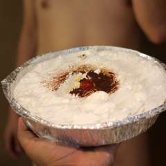 Muddylex was surprised by PrinceofPie with a big sloppy cream pie to the face